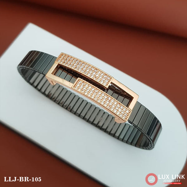 As a fashion expert, this Streamlined Design Rose Gold & Black Color Bracelet for Men is a must-have for any hip hop enthusiast. Made from durable stainless steel with a shining Gold plating, this stunning rose gold and black bracelet exudes a luxurious vibe. The perfect blend of style and quality, this diamond-studded bracelet is a statement piece that will elevate any outfit.